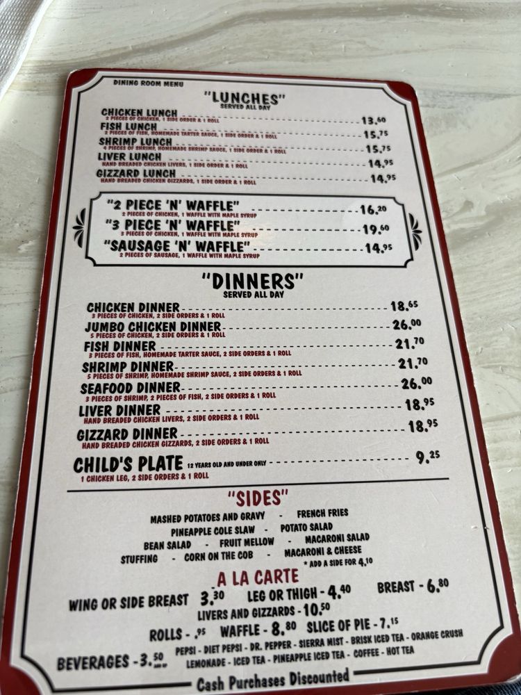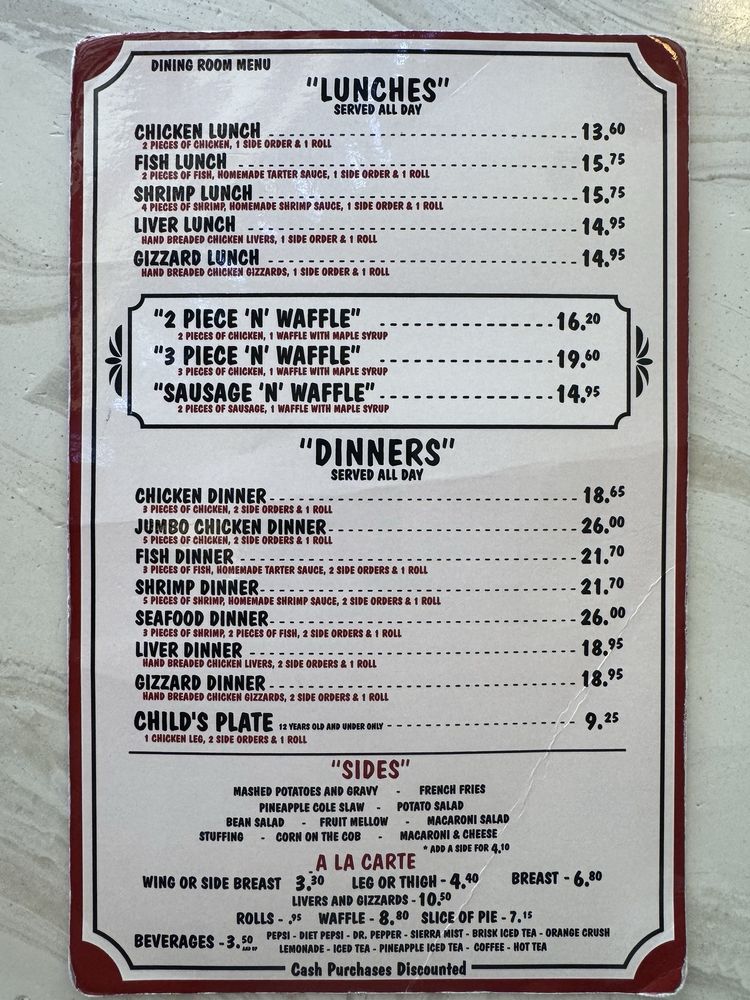 Introducing Dinah’s Chicken: A beloved chicken shop in Glendale, CA, known for its crispy and juicy fried chicken. Offering a variety of individual and family meals, including fried chicken, fish, shrimp, livers, and gizzards, all hand-breaded to perfection. The menu also features delicious waffles with different meat options and tempting sides like mac & cheese, mashed potatoes, and signature pineapple slaw. With friendly service and a cozy atmosphere, Dinah’s Chicken has become a go-to spot for comfort food lovers. Customers rave about the consistency and flavor of the breading, the tender meat, and the generous portions. Whether you're a fan of classic fried chicken or looking to try something new, Dinah’s Chicken is a must-visit for a satisfying meal that hits the spot.