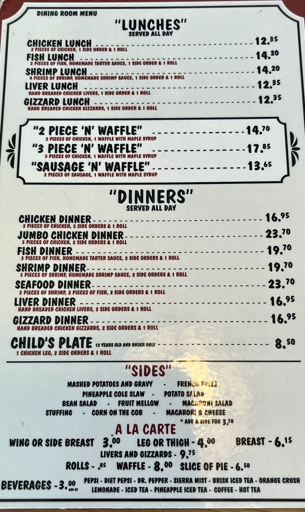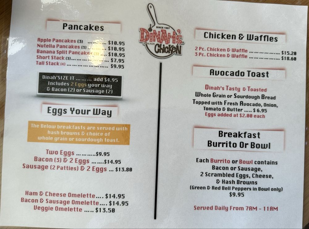 Dinah’s Chicken Menu (Update 2025)
